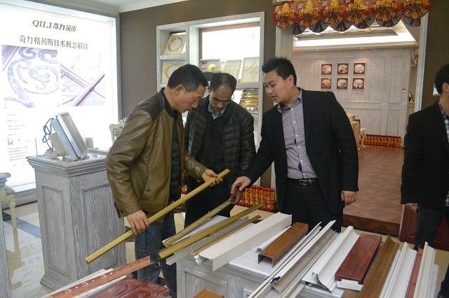直供專車抵達奇力總部后,業主朋友們就迫不及待得趕往公司展廳參觀。而奇力的工作人員們早已整齊容裝,靜候來賓。引領盛澤朋友們領取豐厚而不菲的禮品后,漫步走進富麗堂皇的美式風尚第二季全新展廳,高貴奢華、精致典雅置身其中。來賓朋友們紛紛掏出手機、相機,記錄下奇力的精美產品與展廳。