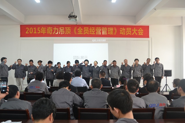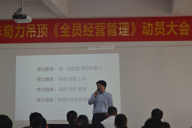 4月2日,繼3月奇力多次大幅對(duì)外展示大動(dòng)作和決心之后,終于迎來(lái)奇力內(nèi)部大變革的伊始?!?015年奇力吊頂‘全員經(jīng)營(yíng)管理’動(dòng)員大會(huì)”于8時(shí)10分正式拉開(kāi)帷幕。