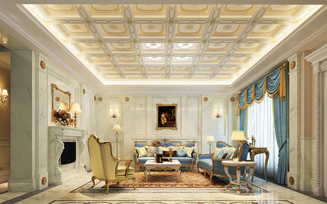 其設計理念來源于梵蒂岡的圣彼得大教堂穹窿頂,尤其是其巨大的圓形穹頂脊線有序排布的雕刻,錯落排列的方格;而最核心的客廳頂產品設計理念則來源于米開朗基羅設計的雙重圓頂,在雕刻精美的吊頂板之下設計一圈鏤空的光帶,讓光線自由發散,用光線來烘托板面的精致細膩,營造如夢似幻的空間氛圍。并借鑒其井字結構的裝飾方式,在天花吊頂領域引入腰線裝飾的概念,以腰線做架構,營造空間氣勢,突顯細節的精致與非凡的格調。