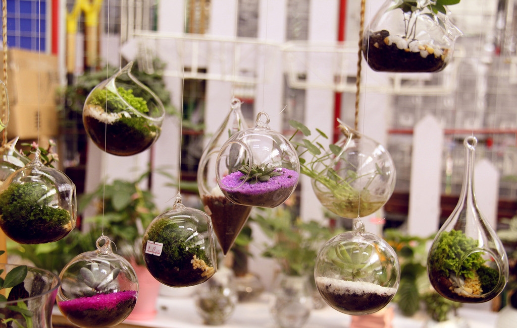另外,水培植物很適合擺上餐桌。如果是需要花盆土壤的,可以選擇編織的懸掛花架,飄飄然的度假風(fēng)。在陽光柔和的午后,幾本舊書和甜點,一切都剛剛好。