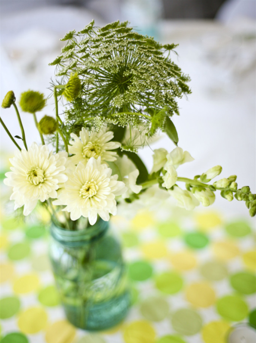 為了顯得更加小清新,可以把餐布、杯子、花瓶都換成綠色或白色。植物的花盆不要太厚重,盡量多用玻璃器皿,制造有風(fēng)吹過的通透感。