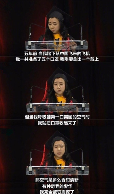 近日,在微博、朋友圈瘋狂轉發(fā)關于馬里蘭大學女留學生畢業(yè)演講中的“辱華”言論。