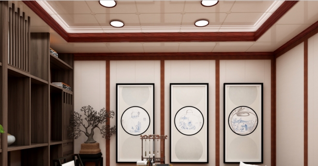 無論從哪個角度,這個吊頂都能給人絕佳的視覺美感,為悠閑的品茶時光里,增添沁人心脾的清涼。