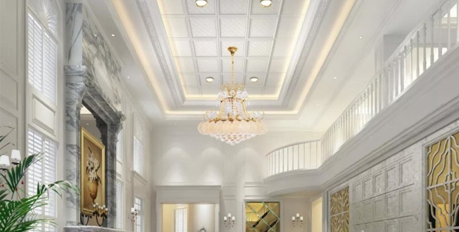 挑高客廳的空間大,如果頂部裝飾少,會顯得很空洞。可以在頂部裝上集成吊頂,來彰顯你的品味。注意在選擇集成吊頂?shù)臅r候要和家中的整體風(fēng)格進(jìn)行匹配。